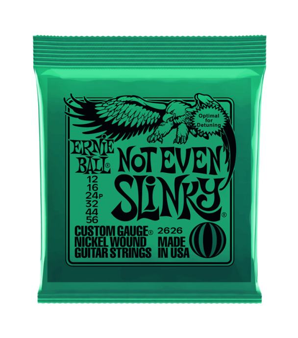 Ernie Ball Not Even Slinky žice za električnu gitaru idealne su za one vole štimati svoj instrument niže. Idealno za drop D ili drop C štim. Not Even Slinky žice su motane sa niklovanom žicom oko hex čelične jezgre. Debljine žica u setu su: .012 .016 .024p .032 .044 .056.