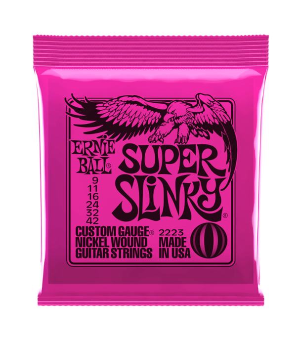 Ernie Ball Super Slinky Electric Strings koriste Jimmy Page, Jeff Beck i Angus Young. Ove žice su precizno izrađene prema najvišim standardima i po točnim specifikacijama da osiguraju konzistentnost, optimalne performanse i dugovječnost. Super Slinky žice su napravljene od niklovanog čelika omotanog oko heksagonalno oblikovane čelične jezgre. Žice bez namotaja su napravljene od posebno temperiranog visoko karbonskog čelika te proizvode dobro balansirani ton za vašu gitaru. Debljine u setu: .009 .011 .016 .024w .032 .042