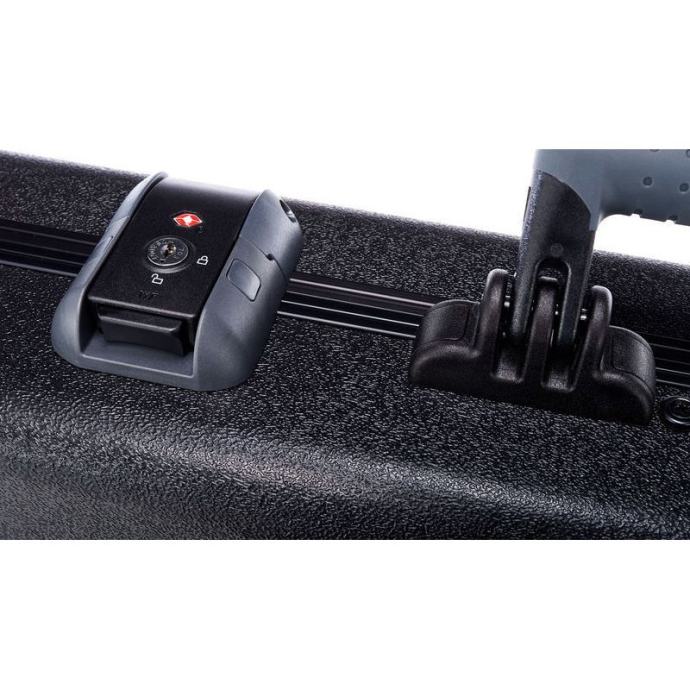 Fender Deluxe Molded kofer za bas gitaru. Kataloška šifra Fender Deluxe Molded Bass kofera: 099-6162-306. Fender Deluxe Molded Bass kofer dizajniran je za večinu Fender bas gitara. Savršeni način da Vaš bas stigne na cilj bez ikakvih oštećenja. Prenosite i pohranjujte svoj električni bas sa stilom u ovom luksuznom lijevanom koferu, dizajniranom posebno za vaš instrument. Svaki element ovog kofera je projektiran kako bi se stvorila vrhunska zaštita instrumenta. Veliki unutarnji središnji džep je savršeno mjesto za pohranu pribora poput trzalica, kabela i remena, a istovremeno pomaže u stabilizaciji vrata tijekom transporta. Zahvaljujući gumenim nožicama na šarnirnom rubu, možete uživati u dodatnoj stabilnosti - ne morate se više brinuti da će se vaš kofer prevrnuti kada ga spustite.