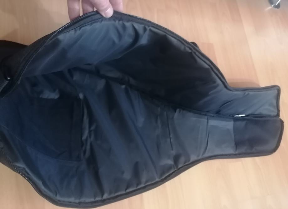Torba ima i dvodijelnu ručku i naramenice koje se jednostavno podešavaju, tako da možete nositi gitaru bez problema,bilo u ruci il na ramenima Prednji pretinac nudi dodatno mjesto za spremanje pribora