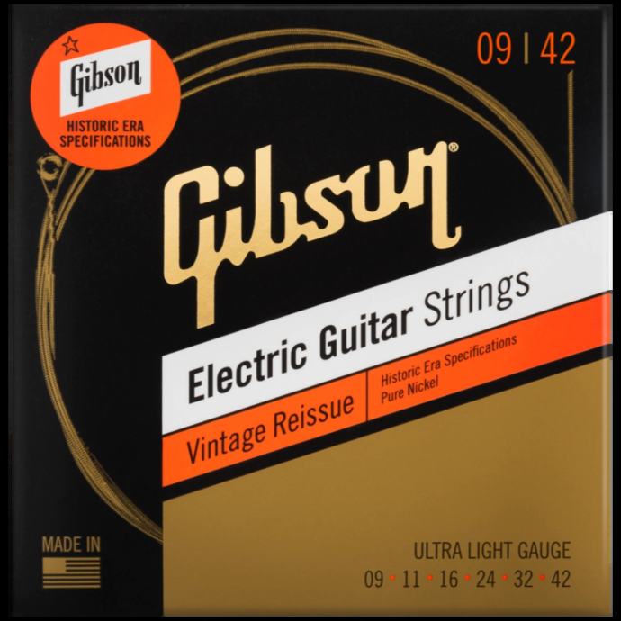 GIBSON Vintage Reissue 09-42 (SEG-HVR9) su žice za električnu gitaru koje su razvili Gibsonovi majstori 1950-ih godina. Izrađene su točno onako kako su bile u originalnoj Gibson tvornici u Kalamazoou - umotane u najčišći nikl za poznati osjećaj, jasnoću i toplinu. Vintage reizdanja su jedini izbor ako želite bezvremenski ton zvuka Gibsonove zlatne ere.