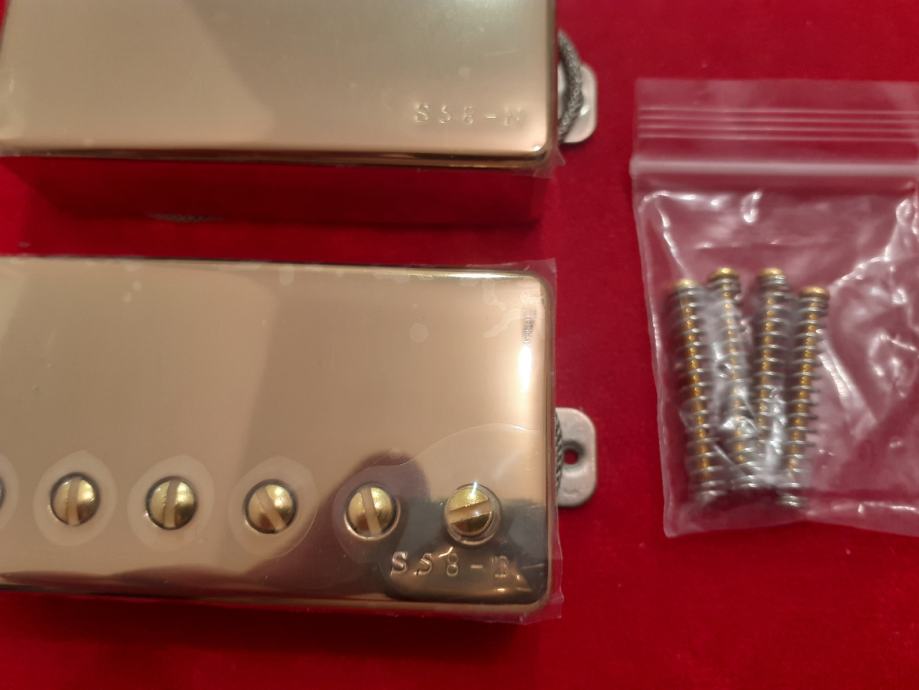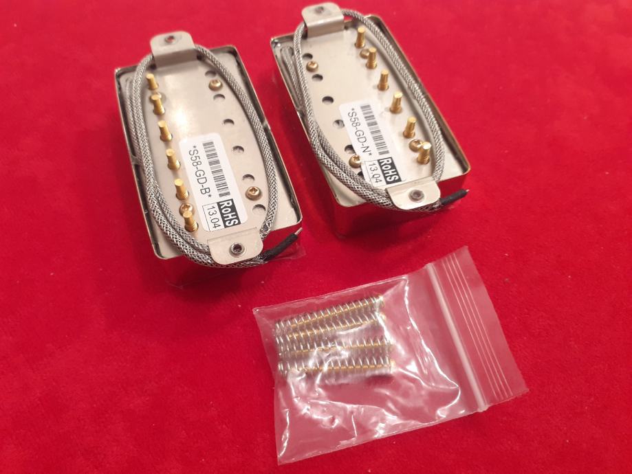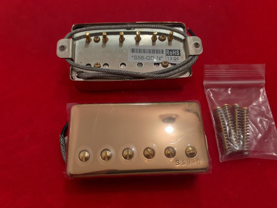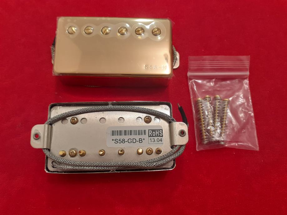 NOVI SET IBANEZOVIH HUMBUCKERA S-58 NECK I BRIDGE. METAL BRADED WIRE GOLD. ALNICO 5 MAGNET. DODTAVA U CIJENI.