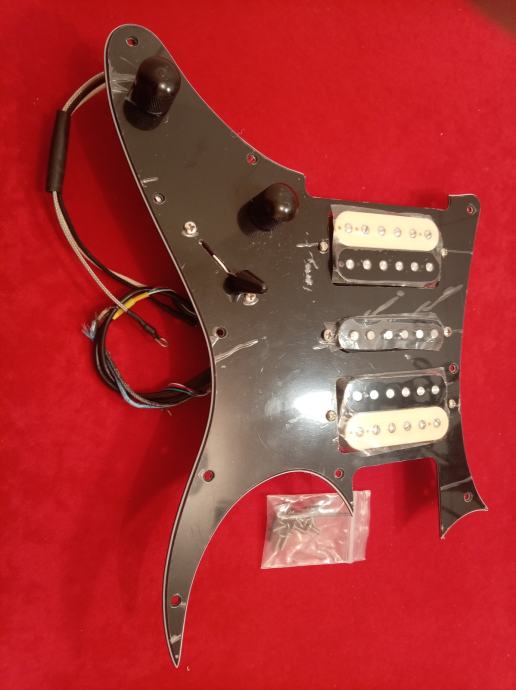 NOVI FULL HSH PICGUARD ZA IBANEZ GITARE. 3PLY CRNI PICGUARD, ALNICO-5 PICKUPI, CTS 500K POTOVI, 5WAY SKLOPKA, TREBLE BLEED, PIO KONDEZATOR, AWG ŽICA, VIJCI.......