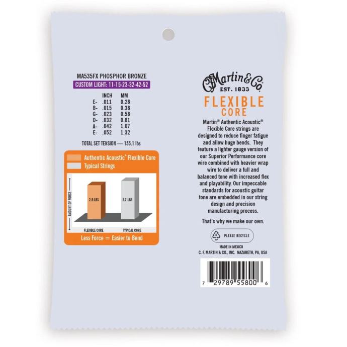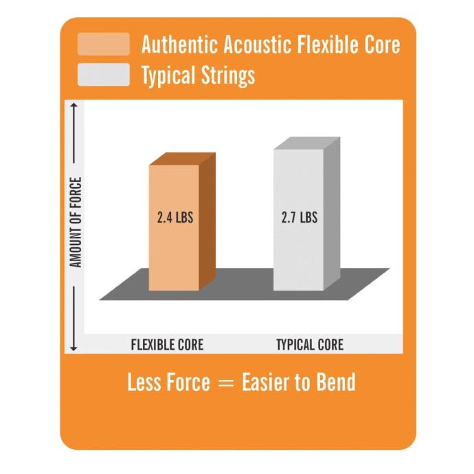 Martin® Authentic Acoustic® Flexible Core žice dizajnirane su za smanjenje zamora prstiju i dopuštaju velika savijanja (bendanje).