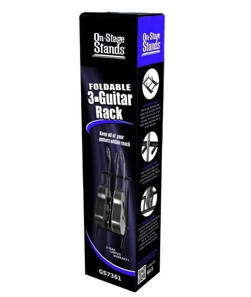OSS GS7361 je sklopiv stalak za 3 gitare pri čemu je moguće kombinirati akustične i električne modele.