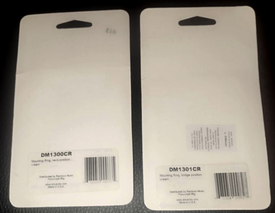 Set plastičnih okvira za humbuckere ( humbucker ring ) - cream white - DiMarzio USA. Nije korišteno. Cijena je za oba, može i pojedinačno.