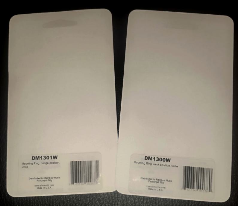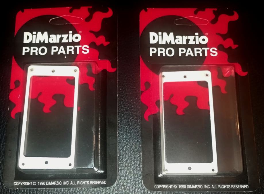 Set plastičnih okvira za humbuckere ( humbucker ring ) - bijeli - DiMarzio USA. Nije korišteno. Cijena je za oba, može i pojedinačno.