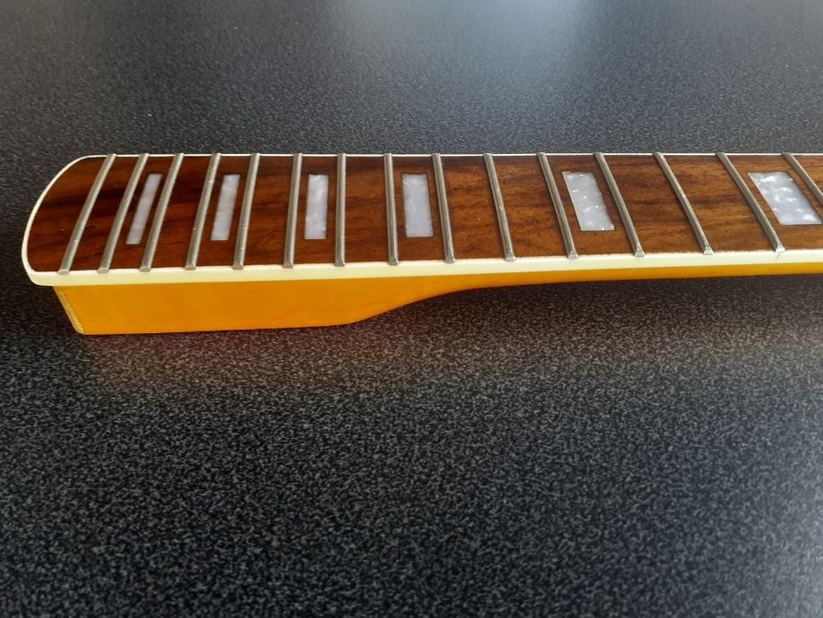 NOVO. KVALITETAN I IZABRANI KOMAD DRVET. MAPLE NECK I ROSEWOOD FINGERBOARD. BIG HEAD, 22 PRAGA, SKALA 25.5 INCH., NUT 42mm, HEEL 57mm, TUNER HOLE 10mm, C OBLIK VRATA, KRASAN YELLO GLOOS FINISH. DAVNO BILE STAVLJENE MASINICE PA SKINUTE. DOSTAVA U CIJENI.