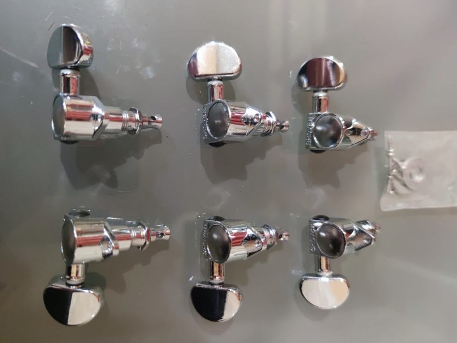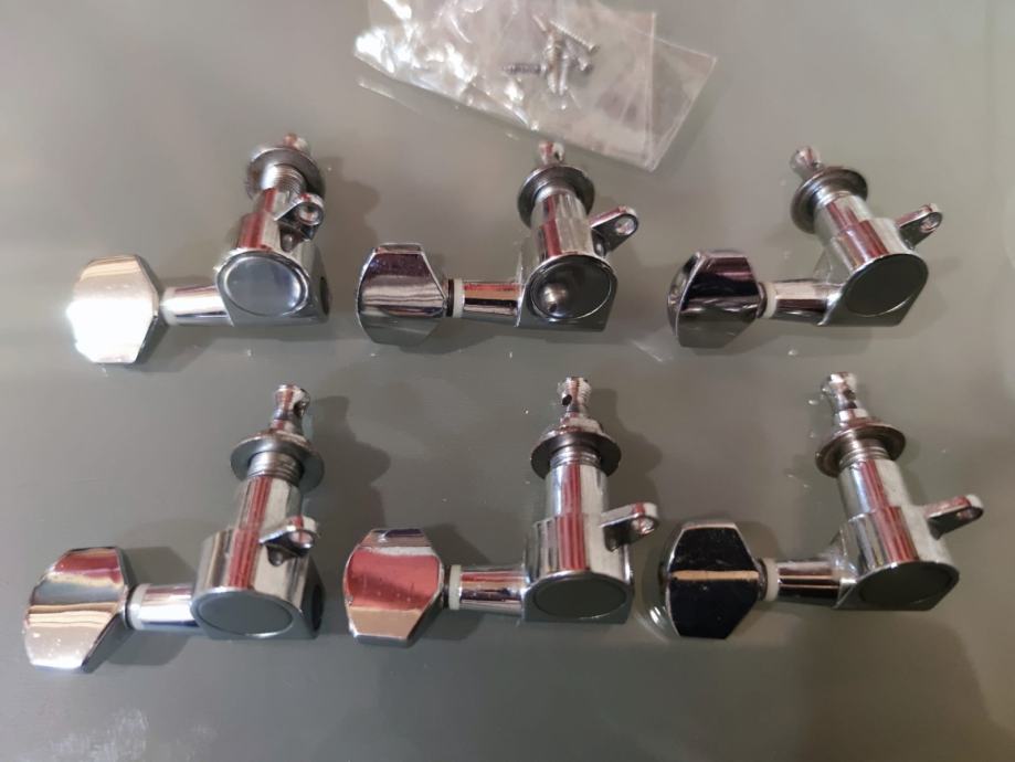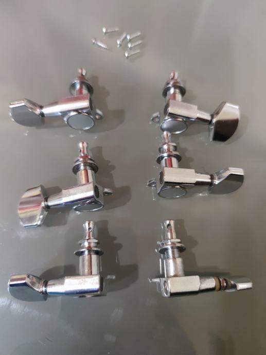 Tuneri/navijači/mašinice. Korištena ispravna 3 seta sa svim podlošcima, šrafićima i maticama. Groveri 3L + 3R, naravno, nisu original, što se može zaključiti i po cijeni.