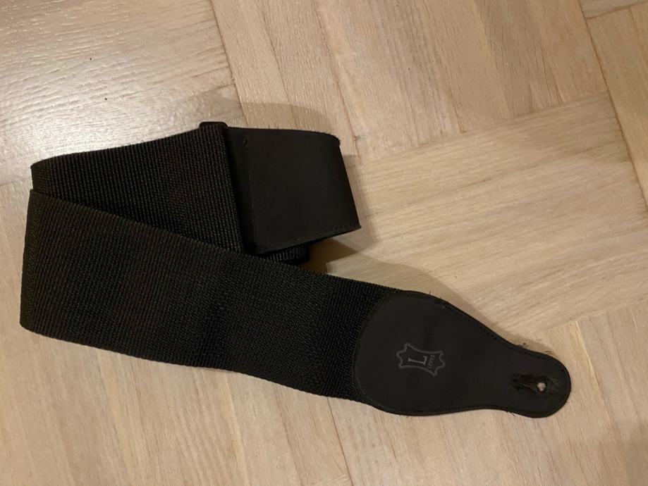 Univerzalni podesivi crni široki remen od polyestera s kožnim vrhovima za sve tipove gitara.