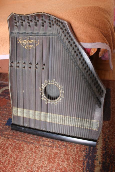 instrument iz obiteljskog nasljedstva. instrument je očuvan ali nije sviran mnogo godina. zadnjih 5 žica nedostaju, sve ostale su na instrumentu ali su vrlo stare.