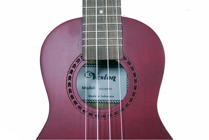 VESTON KUC100, koncertni ukulele u crvenoj ili crnoj boji. Prigodan za sve uzraste, početnike i naprednije svirače.