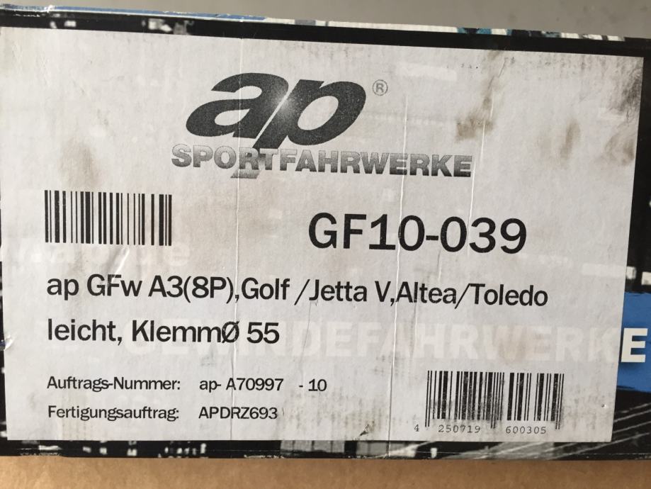 AP gewinde za Golf V, Golf VI, Golf 5, Golf 6, Passat 3C, nove i nekorištene, amortizeri i opruge, podešavanje visine od 30mm do 65mm