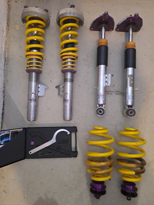 Prodajem kompletan ovjes za BMW X5 i X6, E70, E71. Ovjes je sportski KW varijanta 3, što znači mogućnost podešavanja visine vozila, te podešavanje tvrdoće kompresije i odskoka amortizera pomoću alata koji je na fotografiji uz ovjes. Ovjes je kompletan za postavljanje na vozilo.