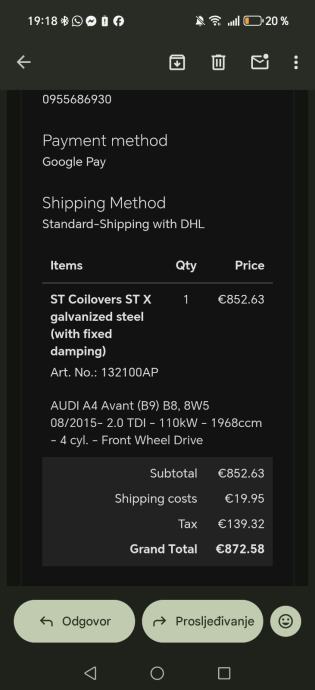 Gewinde na prodaju, kao nove. I. Aju račun za garanciju. Stavljene na auto u 4mj, skinute prije mjesec dana zbog prelaska na zračni ovjes.