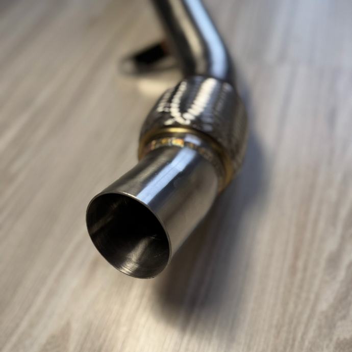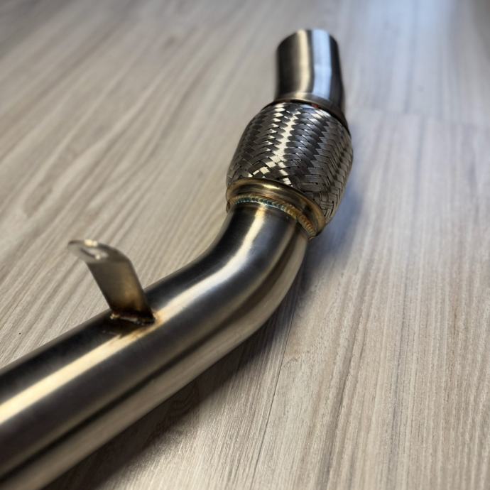Downpipe je promjera 63.5mm (2.5 inch), ima stijenke debljine 1.5 mm, te je izrađen od visokokvalitetnog nehrđajućeg ćelika SS304.