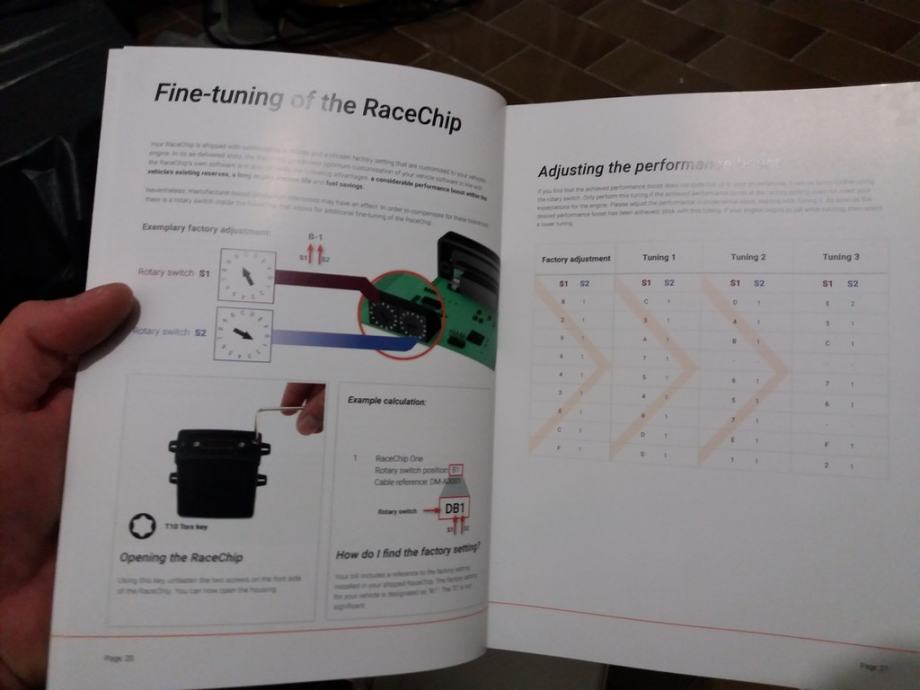 Proizvođač Racechip specificira povećanje snage za 27KS i moment za 40Nm.