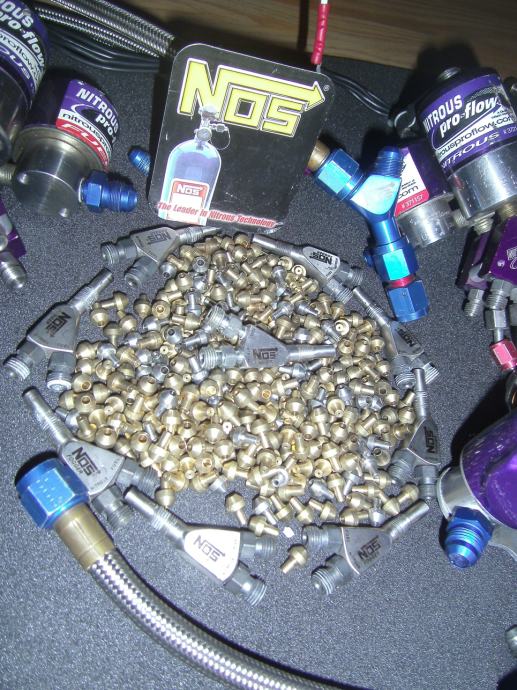 No u original sistemu od NitrousProFlow idu njihove dizne/nozzles koje su vrhunske ali eto ipak su trenutno/do sada najbolje od Holley/Nos specifičan model koji ima 6 rupica za gorivo i jednu centralnu za nos te su namijenjene umetanju u usisni trakt pod kutem. (slike govore sve.) Preciznije sama dizna ne mora ulaziti u cijev pod 90 stupnjeva pa bočno izbacivati smjesu, a u isto vrijeme ometati sam usis svojom intruzijom i samim tim čineći obstrukcije i turbulencije. Ova se montira u cijev pod kutem tako da je kao pravi injektor šibnuta u cijev a da je zapravo tek pripojena iznad. Najbolja dizna te pošto je ovo i vjerojatno najbolji sistem na tržištu original dizne su upgradane upravo ovima! 8 komada od inoxa i je... opasne. Zato su distribucijski blokovi ostali original jer su jednostavno najbolji. Kako navode da imaju do 75% bolju distribuciju i do 35% bolji protok od ostalih proizvođača i njihovih modela. Inače NitrousProFlow čiji je ovo sistem su iznad ostalih i u ostalim komponentama, jedino eto te dizne su kompletno drugi dizajn pa su zamijenjene. No prolistajte kataloge i uspoređujte. Vratiti će te se na kraju upravo na ovaj stistem ovdje hehe ;)