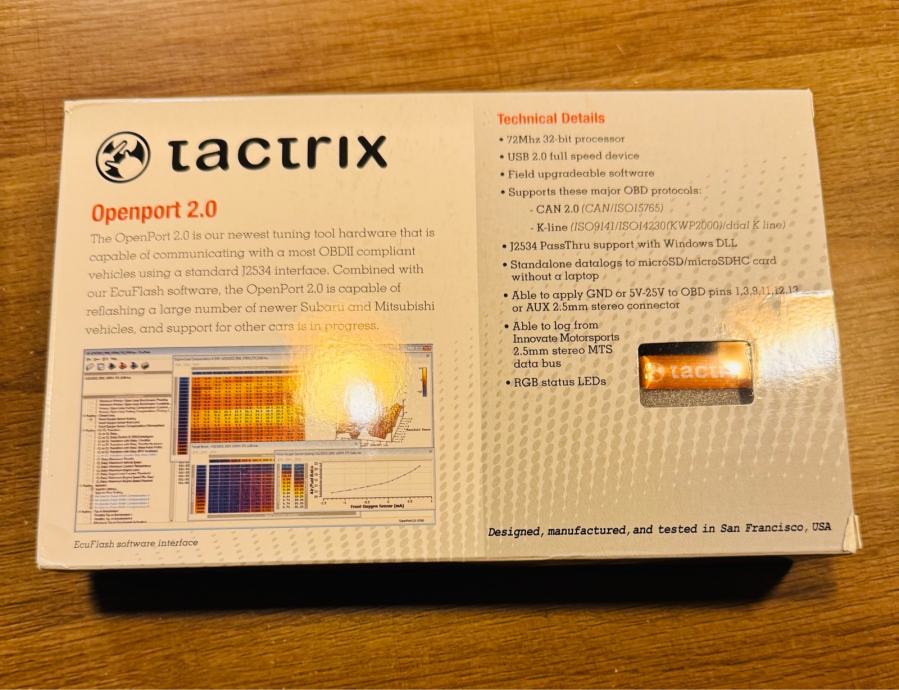 Openport 2.0 je najnoviji hardverski alat za podešavanje tvrtke Tactrix koji je sposoban komunicirati s većinom OBDII kompatibilnih vozila koristeći standardno J2534 sučelje. U kombinaciji s Tactrix EcuFlash softverom, Openport 2.0 je sposoban za ponovno programiranje velikog broja novijih vozila Subaru i Mitsubishi, a podrška za druge automobile je u tijeku.