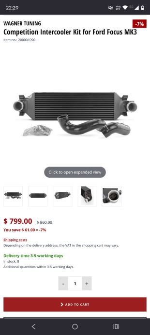 Prodajem wagner tuning intercooler kit nikada otpakiran za Ford Focus RS MK3