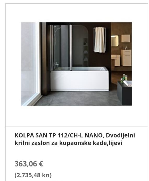 - KOLPA SAN dvodjelni krilni zaslon za kupaonske kade - lijevi,