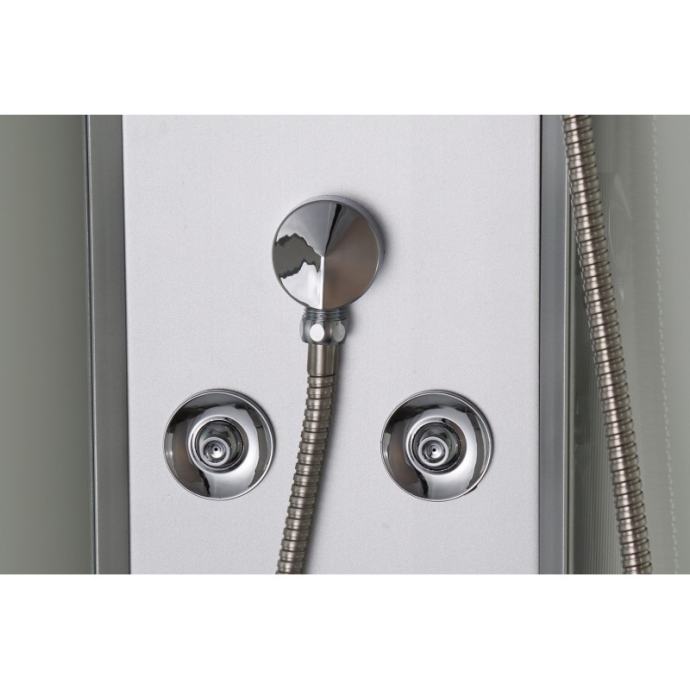 Sa svojim potpuno zatvorenim dizajnom, ova tuš kabina nudi bezbrižno opuštanje i potpunu zaštitu od vode, donoseći elegantan i funkcionalan dodatak vašoj kupaonici.RELAX BLACK Potpuna tuš kabinaPotpuna tuš kabina izvrsno je rješenje za vašu kupaonicu. Budući da je tuš kabina potpuno zatvorena, sva voda ostaje u kabini. Tuš kabina se može postaviti u bilo koju prostoriju.Detalji o proizvodu:Vrata i fiksni stakleni dio od 4 mm ESG sigurnosnog staklaStražnja stijenka od 4 mm ESG stakla, crnaAluminijski profili, mat srebrniDvostruki kotačići, sklopivi gore/doljeJednoručna armatura s preusmjerivačemRučkeNadglavni tušRučni tuš6 masažnih mlaznicaStaklena policaTuš kada visine 14 cmbez Quick-Line sustavaUgradnja bez silikona!PAŽNJA!Odgovornost za štetu nastalu dostavomPrilikom dostave pregledajte robu i ambalažu za bilo kakvu štetu! U slučaju oštećenja, NE koristite robu, već je ostavite u stanju u kojem je pronađena i odmah nam prijavite štetu.