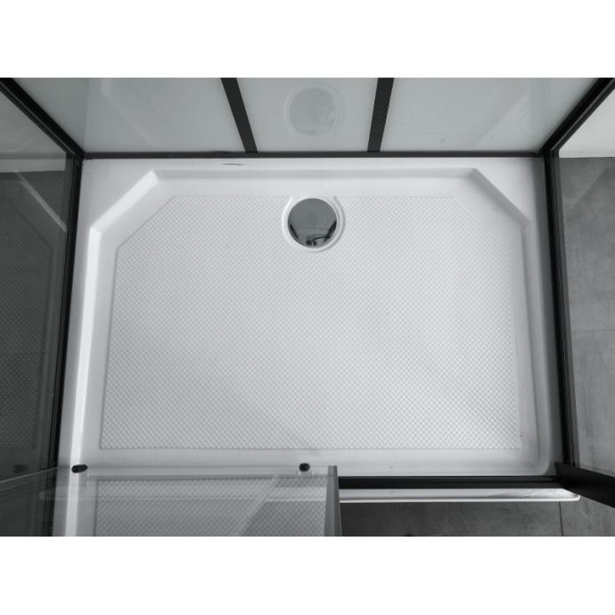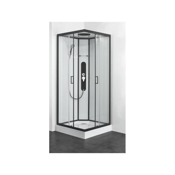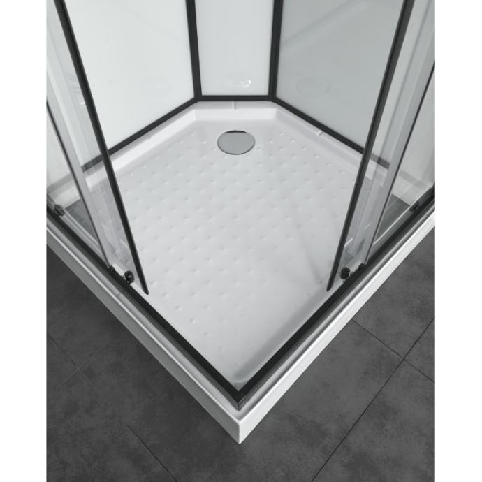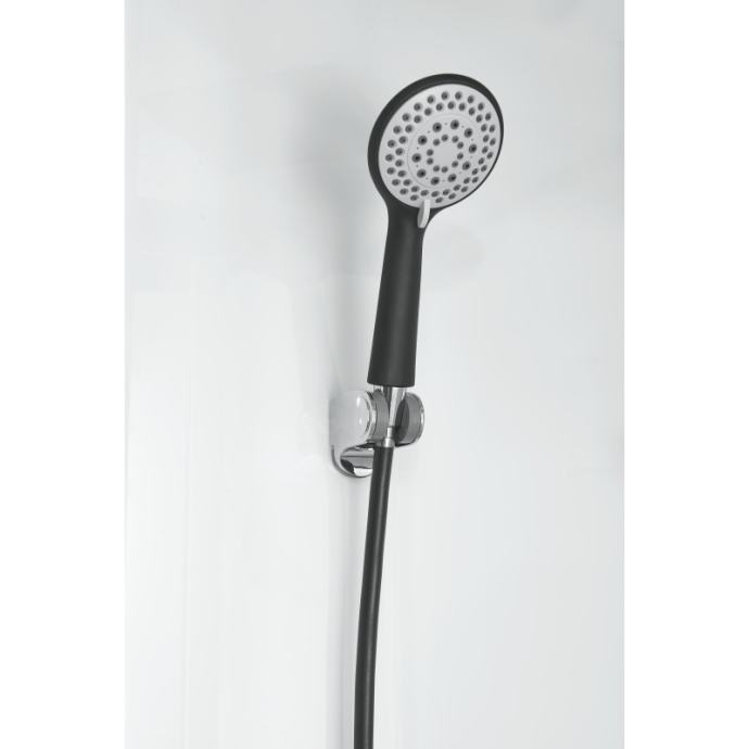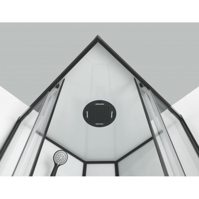 S modernim dizajnom i mat crnom površinom, vaša kupaonica blista sofisticiranim stilom i udobnošću.Savršena tuš kabina SKY 2 s brzom montažomOkrugla tuš kabina SKY 2 moderna je tuš kabina u mat crnoj boji. Izrađena je od aluminijskog okvira i ESG sigurnosnog stakla. Odgovarajući elementi zaokružuju moderan dizajn - vrhunac svake kupaonice. Nadglavni tuš i ručni tuš s 3 smjera podesive ručke osiguravaju iskustvo tuširanja i opuštajući odmor u vašoj kupaonici. Zahvaljujući brzoj montaži Quick Line, ne trebaju vam vijci, alati ili silikon. Elementi su precizno postavljeni i vodootporni. Jednostavna montaža omogućuje brzu ugradnju i trenutnu upotrebu.Detalji o proizvodu:ESG sigurnosno staklo (5 mm)Stražnja staklena stijenka bijela (4 mm)Nadglavni tušAluminijski profili u mat crnoj bojiAluminijski okvir za staklenu pločuRučke u mat crnoj bojiDvostruki kotačići na dnu i vrhuRučni tuš s 3 smjera podešavanjaPloča s pločom od nehrđajućeg čelika i staklenom pločom uklj. mlazniceStaklena policaStakleni krov u bijeloj bojiMaterijal:AluminijESG sigurnosno stakloAkrilna tuš kabinaOpće informacijeDimenzije u cm (D x Š x V): 90 x 90 x 225 cmSadrži 4 kutijePAŽNJA!Provjerite ima li oštećenja prilikom dostaveMolimo provjerite robu i ambalažu ima li oštećenja prilikom dostave! Ako dođe do oštećenja, nemojte koristiti robu, već je ostavite u dobrom stanju i odmah nam prijavite štetu!