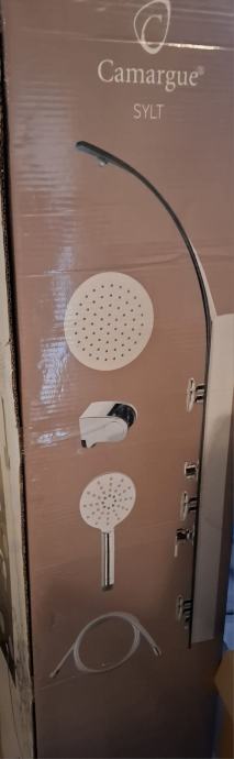 Prodajem kupaonski tuš stup marke Camargue, model Sylt. Stup je opremljen s gornjom kišnom glavom i ručnim tušem, te uključuje miješalice za vodu s više načina regulacije. Izrađen je od kvalitetnih materijala u modernom dizajnu koji će se uklopiti u svaku kupaonicu. Sve potrebne komponente za instalaciju su uključene.