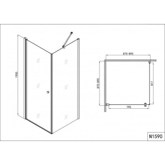 Pravokutna tuš kabina s 1 vratima kromirana 87,5-89,5/87,5-89,5/195 cm