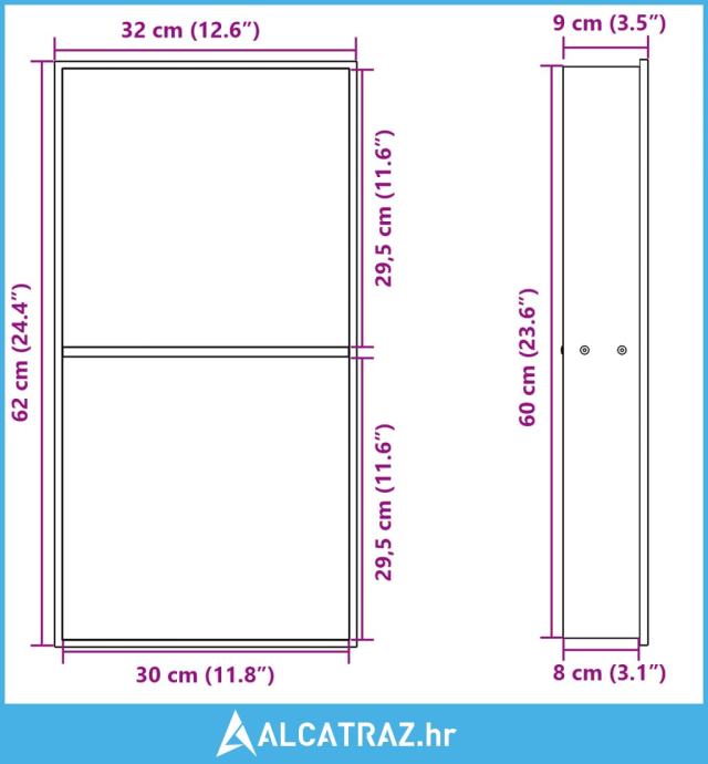 - Ukupne dimenzije: 32 x 62 x 9 cm (Š x D x V)