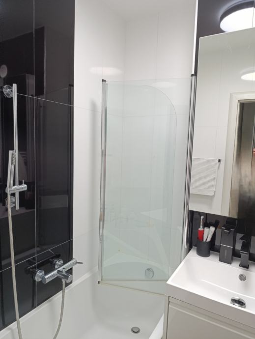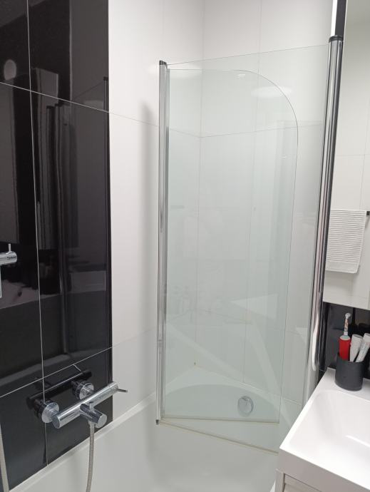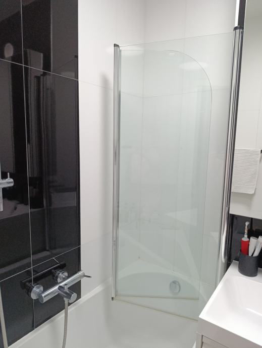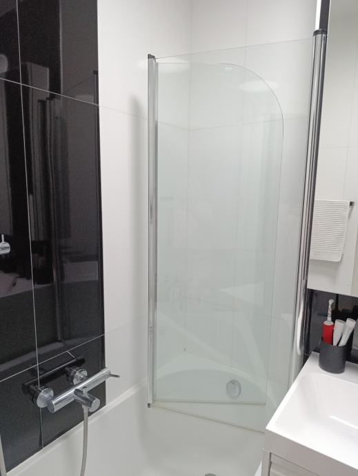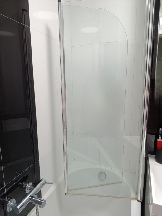 Stranica za kadu preklopna srebrna dužina 64 cm + 54 cm, visina 140 cm, 50 eur.