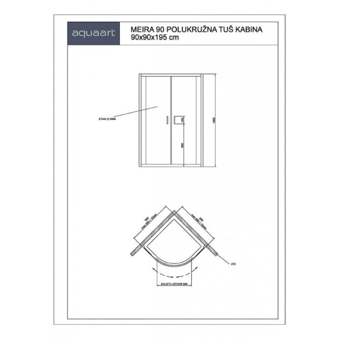 Polukružna tuš kabina Meira 90R 90X90X195cm