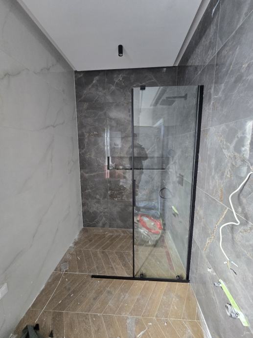 Prodajem novu pomicnu staklenu pregradu za tuš, placena 350 eura, kaljeno staklo, stanje novo. Namontirana bez busenja i skinuta, ne uklapa mi se u kupatilo. Prodajem sa svim dijelovima, nigdje busena, spajana silikonom.