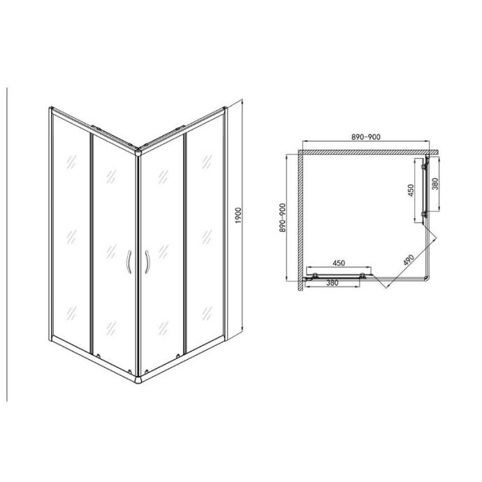 Pravokutna tuš kabina s matiranim staklom, krom 90 x 90 x 90 cm