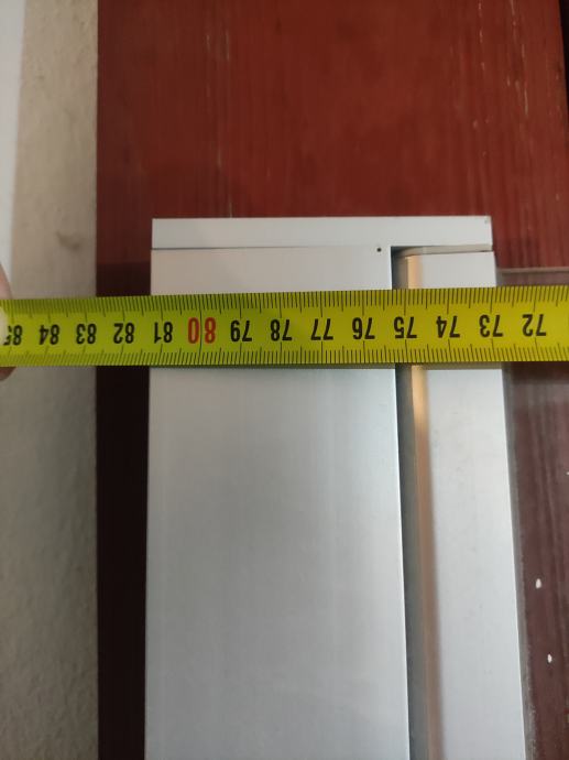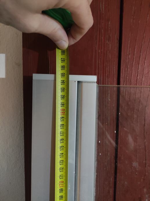 Dimenzije su 185 cm visina, 81 cm širina (zajedno s okvirom), a 75 cm samo staklo. Staklo je kaljeno.