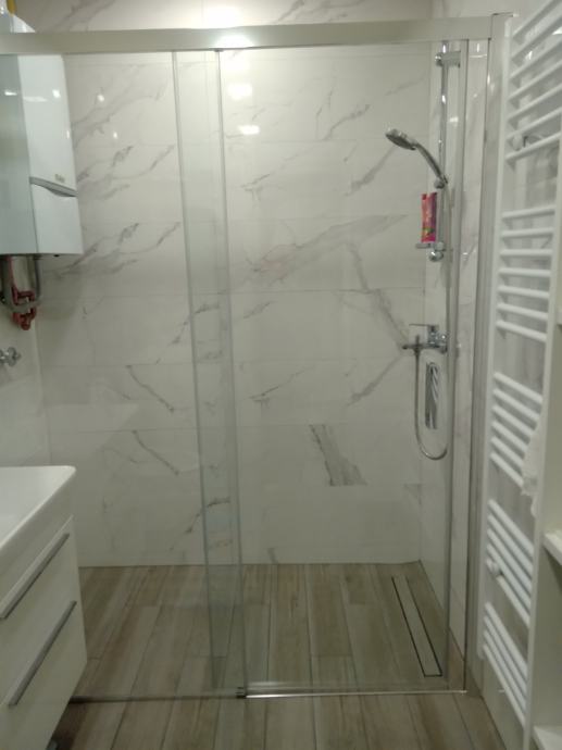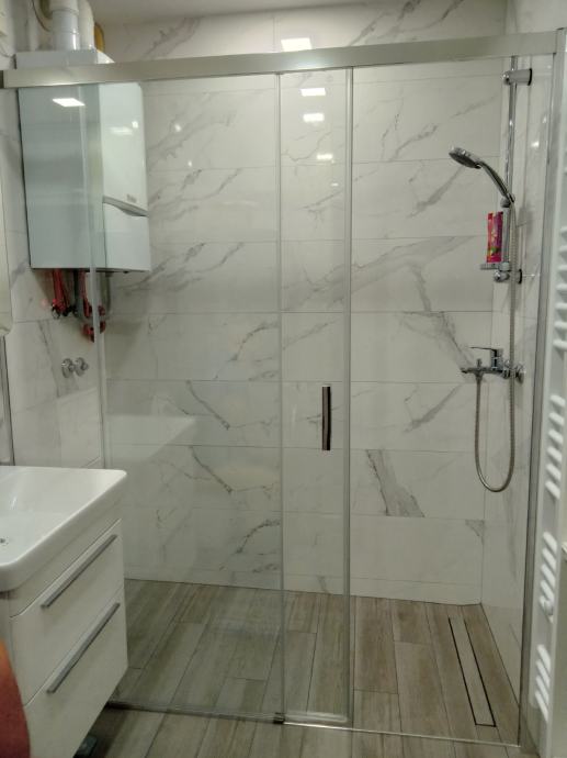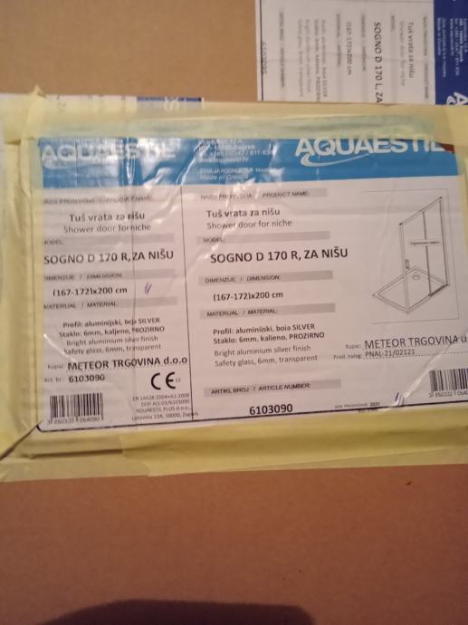 Izuzetno kvalitetna staklena stijena SOGNO D 170 R dimenzije (167-172) × 200 cm. Kaljeno staklo 6mm, prozirno, NOVO ZAPAKIRANO U ORIGINAL AMBALAZI. Placena 4000 kn prodajem za 2000 kn !!!! Prodajemo jel smo kupili krivo preveliko ...