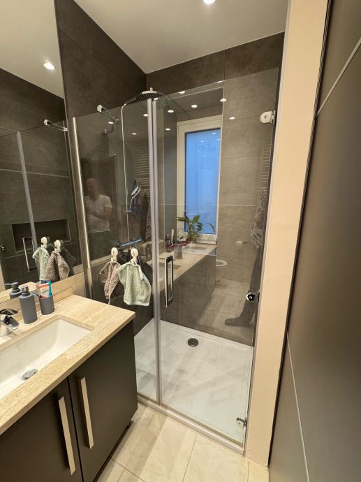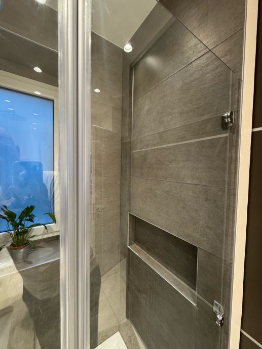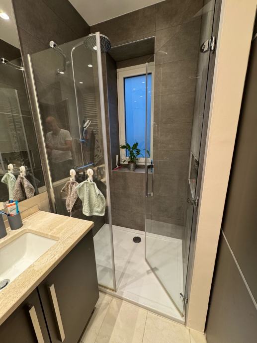 Staklena tuš stijena sa vratima u super stanju 120 š x 195 v. Čista i uredno održavana. Bez oštećenja.