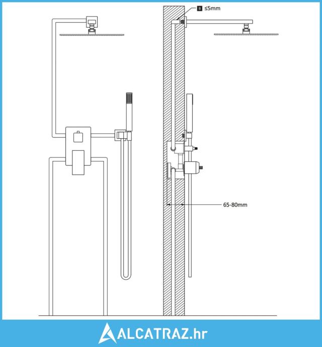 - Dimenzije ruke tuša: 40 x 2,5 x 2,5 cm (D x Š x V)