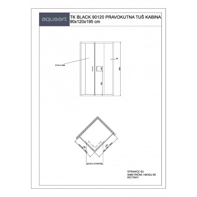 TK Black 90120 pravokutna tuš kabina 90x120x195cm