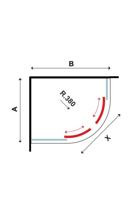 Tuš kabina dimenzije 90x120 (strana A se može podesiti od 86,5 do 90 cm) (strana B 116,5-120 cm)