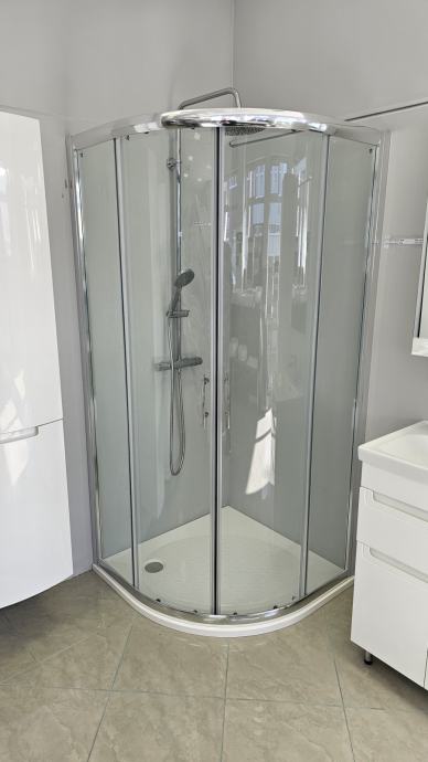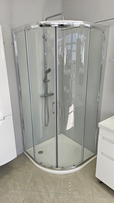 Polukružna tuš kabina sa dvostrukim kliznim vratima, premaz protiv kamenca, kaljeno staklo 6 mm, magnetski zatvarač