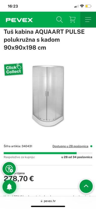 Prodajem ispod nabavne cijene polukružnu tuš kabinu 90 x 90 x 198 (kupljena u Pevexu). Mat staklo, cijena s popustom 180 eura, javiti se na broj 016261015. Lokacija: Hrašće Turopoljsko
