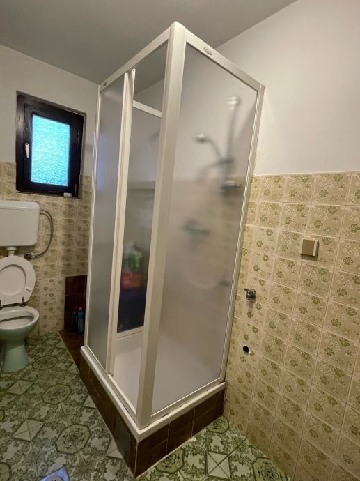 Prodajem tuš kabinu s bijelim aluminjskim okvirom i mat staklenim stijenama. Kabina je kvadratnog oblika s kliznim vratima i pliticom u bazi.