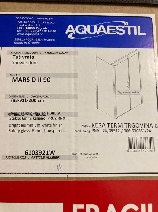 To je kutna tuš kabina fiksni dio 80 cm i vrata sa fiksnim dijelom 90 cm.