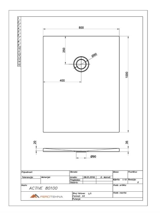 Izrađene od 100% lijevanog sanitarnog akrila (PMMA). Moderne i čiste linije bez vidljivog gornjeg ruba. Niski profil (visina 3,5 cm) s mogučnošću ugradnje u razini keramike.