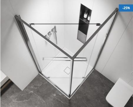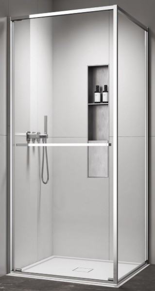 Vrata se klizno otvaraju bočno prema unutrašnjosti tuš prostora, što je posebno praktično u manjim kupaonicama jer štedi prostor i smanjuje kapanje vode prilikom izlaska. Aluminijski profili pružaju stabilnost i vizualnu jasnoću, dok kaljeno prozirno staklo debljine 6 mm unosi dojam lakoće i otvorenosti. Kabina je reverzibilna i omogućuje ugradnju s otvaranjem na lijevu ili desnu stranu, a raspon podešavanja širine od 40 mm olakšava precizno prilagođavanje nepravilnostima zida.