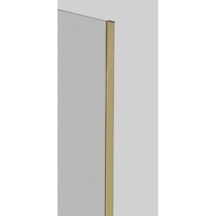 Staklena tuš stijena s 8 mm kaljenim transparentnim staklom i zlatnim aluminijskim profilom.