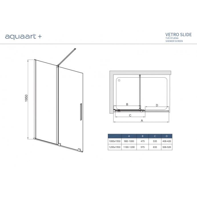 Tuš staklo za VETRO SLIDE TRS 120x195cm