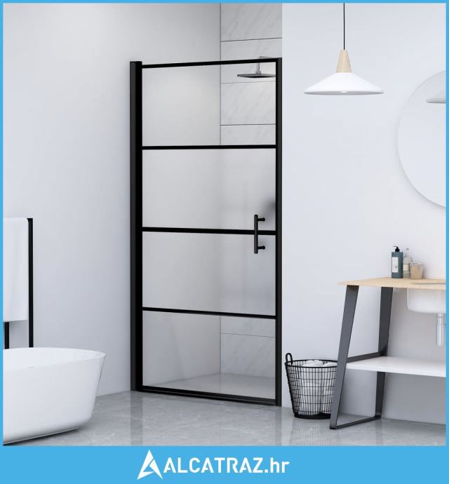 Vrata za tuš-kabinu 100x178 cm napola mutno kaljeno staklo crna - NOVO