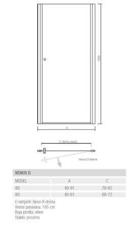 Aquaestil tuš vrata Venus D okretna vrata za nišu 80cm krom / prozirno